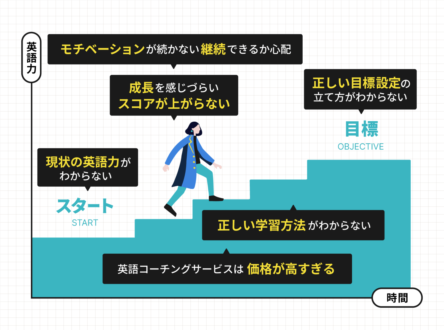 完全オンラインのため、目標達成まで継続しやすい価格(6万円台/月〜)を実現しました。様々な業界でオンライン化が進む中、英語学習もその例外ではありません。オンラインだからこそ、世界・全国から優秀な講師・コーチを採用することが可能となり、本来スクール等で発生する様々な固定費を削減することによって『続けやすい』価格でのサービスを実現しました。
