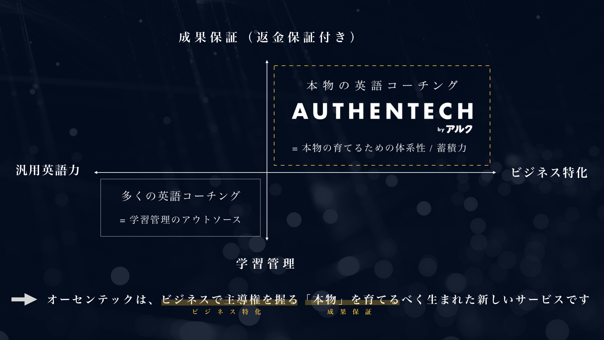 オーセンテックは、「英語を話せる」から「英語で動かせる」へと、あなたを進化させます。
