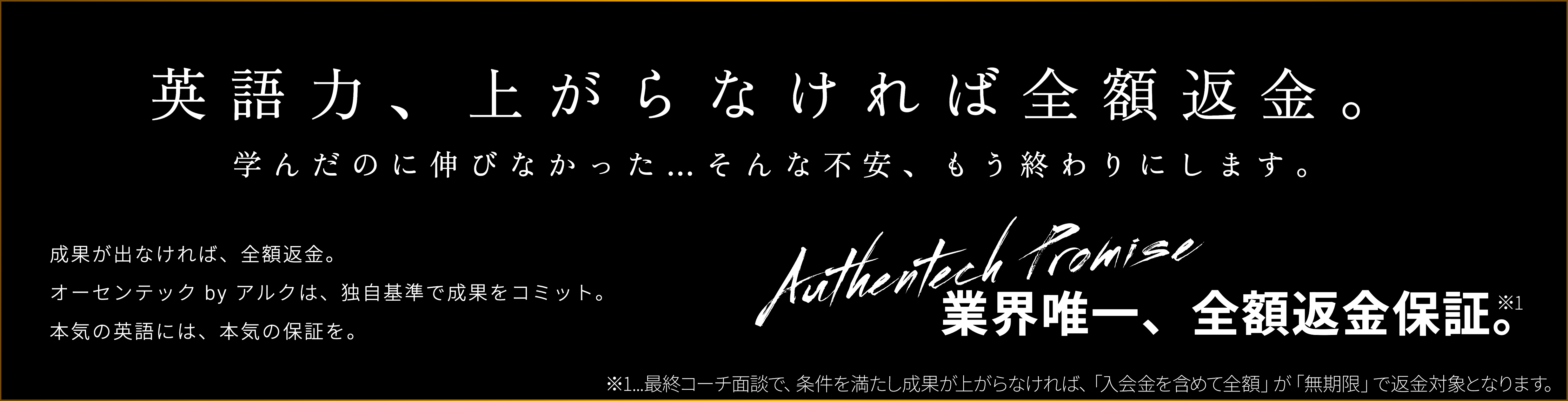 オーセンテックは、受講から1か月といった「期間に基づく」返金保証ではなく、受講者の成果にコミットする形で、保証制度を実施しています。これは、業界唯一の「成果に基づく」全額返金保証制度(※1)です。