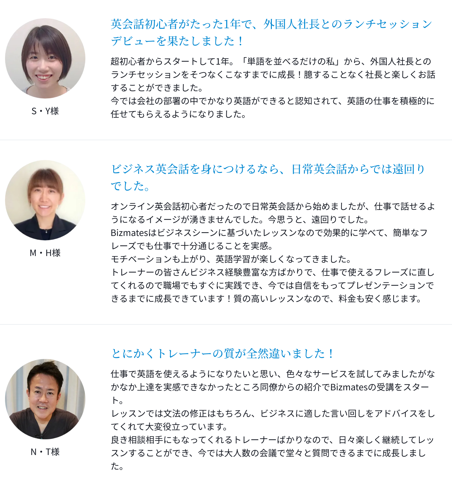 Bizmatesは、”実際のビジネスシーンで使える実践的な英語”にフォーカスしています。